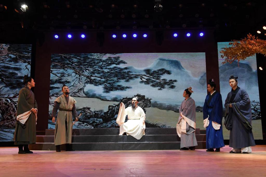 曲阜师大新闻中心讯 12月12日,教育部高校原创文化精品推广计划项目、华体会官方网页版_华体会(中国)中华优秀传统文化“两创”成果展示月展演剧目——舞台剧《夫子》在曲阜校区再次精彩上演,本次活动由党委宣传部、校团委、优秀传统文化教育中心、教师博物馆、文学院联合主办,夫子话剧团和中文剧社联合出演。演出通过学校官方抖音账号和直播平台向全网播出。