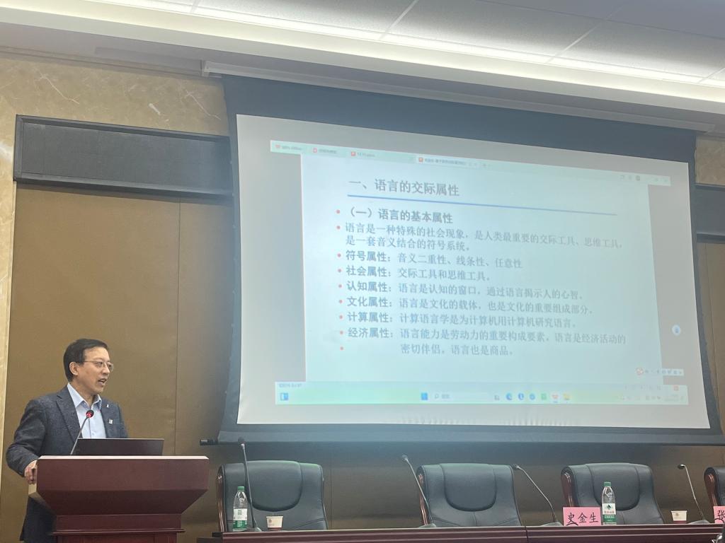 曲阜师大文学院讯 12月15日,全国国际中文教育专业学位研究生教育指导委员会委员、首都师范大学燕京特设讲席史金生教授为文学院师生作了题为《基于语言交际属性的汉语语法事实挖掘和理论探讨》的学术报告。文学院党委书记左兴才、副院长李杰俊、部分老师和百余名本硕博学生参加报告会。报告会由文学院张金圈教授主持。