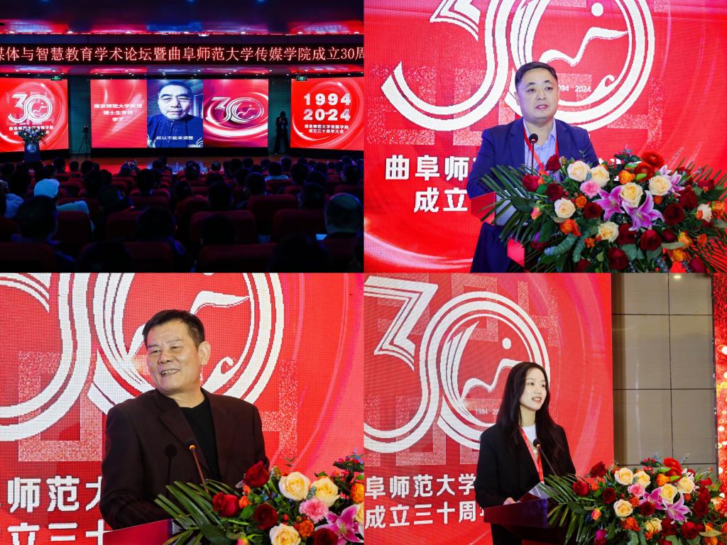曲阜师大党委常委、副校长胡凡刚出席大会并致辞。省内部分媒体和社会各界朋友,传媒学院离退休老同志、校友和师生代表,学校相关部处、学院代表共同参加大会。
