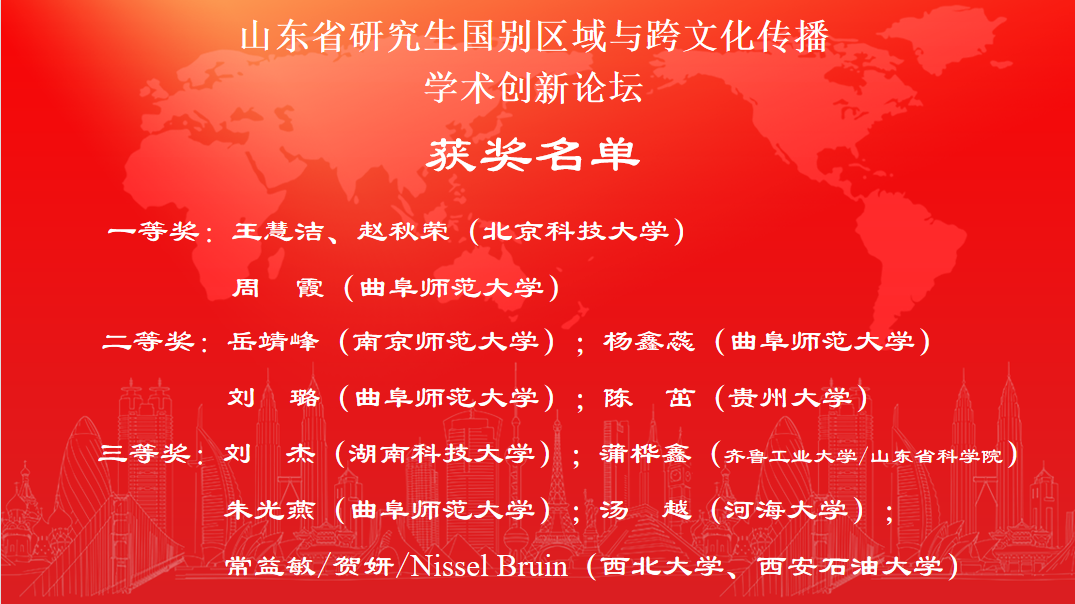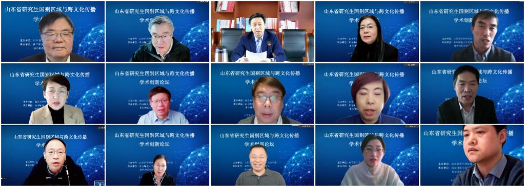 曲阜师大外国语学院讯 日前,山东省研究生“国别区域与跨文化传播”学术创新论坛通过线上方式成功举办。本次论坛由山东省学科评议组(人文社科组)主办,华体会官方网页版_华体会(中国)外国语学院及华体会官方网页版_华体会(中国)研究生处承办,旨在聚焦研究生创新教育,培养服务国家对外战略和对外传播的高素质外语人才。本次论坛共设专家主旨发言、院长论坛及研究生分论坛三大环节,来自全国三十余所高校的百余名专家学者和硕博研究生齐聚云端,共襄学术盛宴。