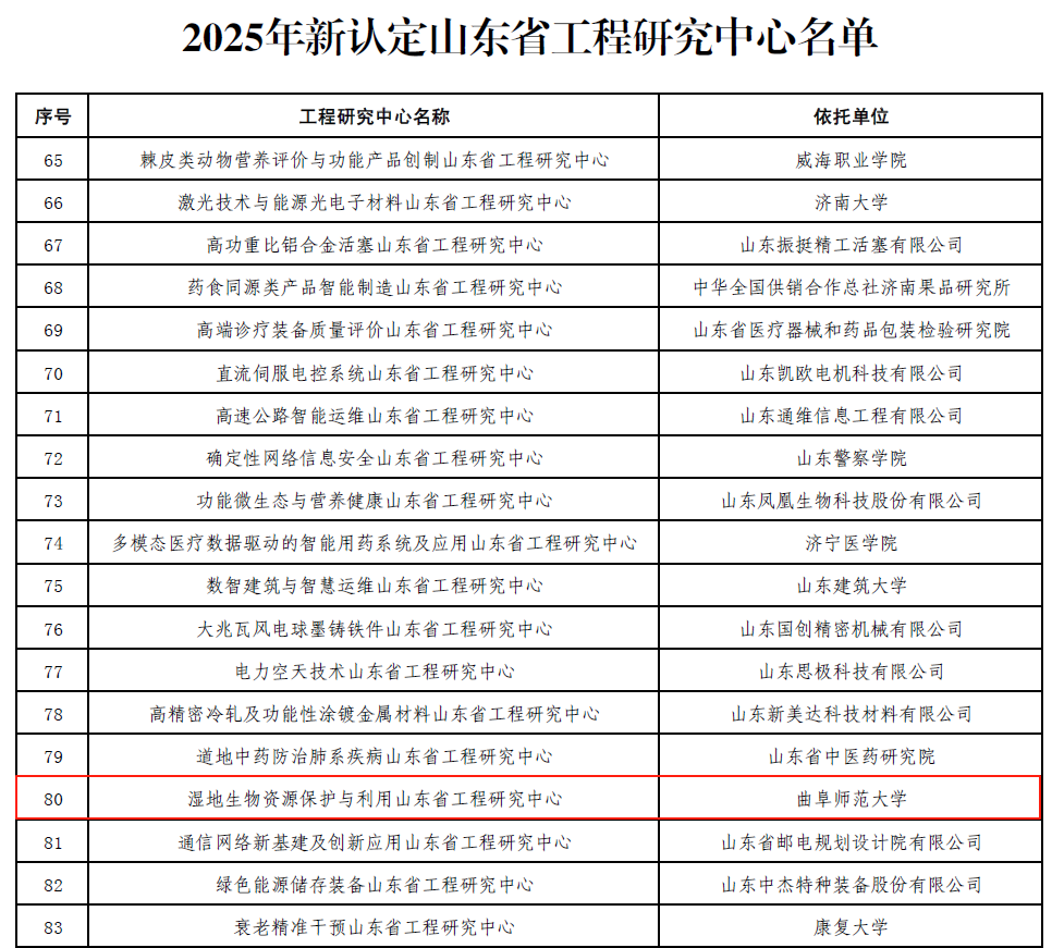 生命科学学院讯 近日,山东省发展和改革委员会发布《关于公布2025年新认定及全部山东省工程研究中心名单的通知》(鲁发改高技〔2025〕575号),依托华体会官方网页版_华体会(中国)生命科学学院建设的“湿地生物资源保护与利用山东省工程研究中心”成功获批。该中心是学校2025年度唯一获批的省级工程研究中心,也是生命科学学院在省级科研平台建设的又一重大突破。