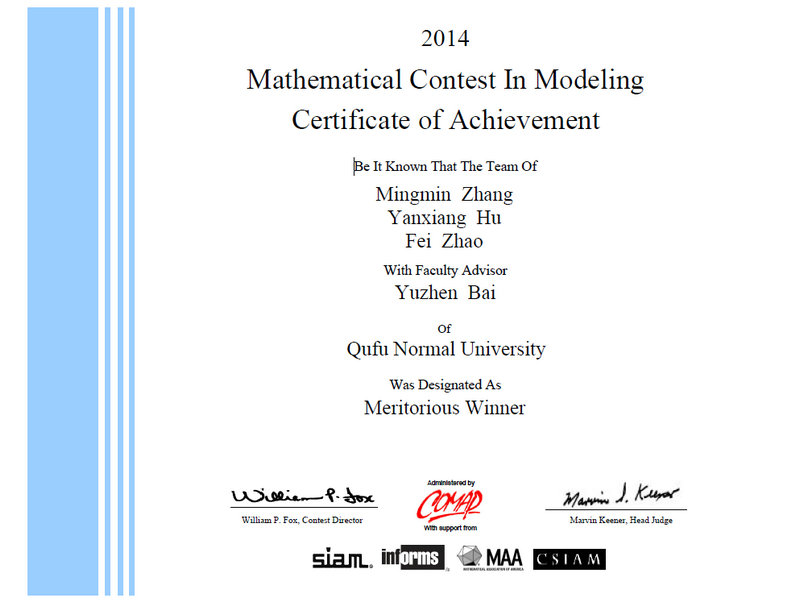 我校学子在2014年美国大学生数学建模竞赛中喜获一等奖