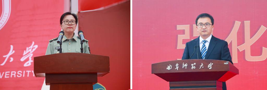 卢国强、胡凡刚在讲话中,向顺利参训的全体学生表示热烈祝贺,向尽责承训的全体部队官兵及国旗护卫队成员表示衷心感谢,向尽职为军训提供保障的全体教职员工表示亲切慰问。学校领导指出,军训是开启全新大学生活的起点。同学们要把军训成果转化为爱党、爱国的真挚情感,胸怀为中华民族伟大复兴而读书的远大志向;要锤炼品德修为,并把军训中形成的好作风、好品质、好习惯带到今后的学习生活中,彰显曲园人的良好风貌。学校领导强调,同学们要恪守“学而不厌,诲人不倦”的校训,秉承“勤奋 朴实 团结 进取”的校风,继续保持奋发向上、努力拼搏的精神,学习钻研,磨砺成长,追求卓越,勇攀高峰,将青春的正步进行到底。