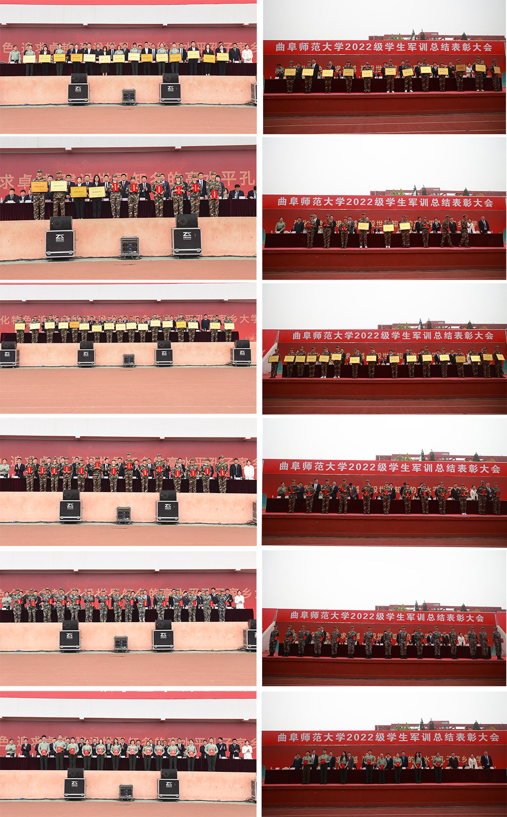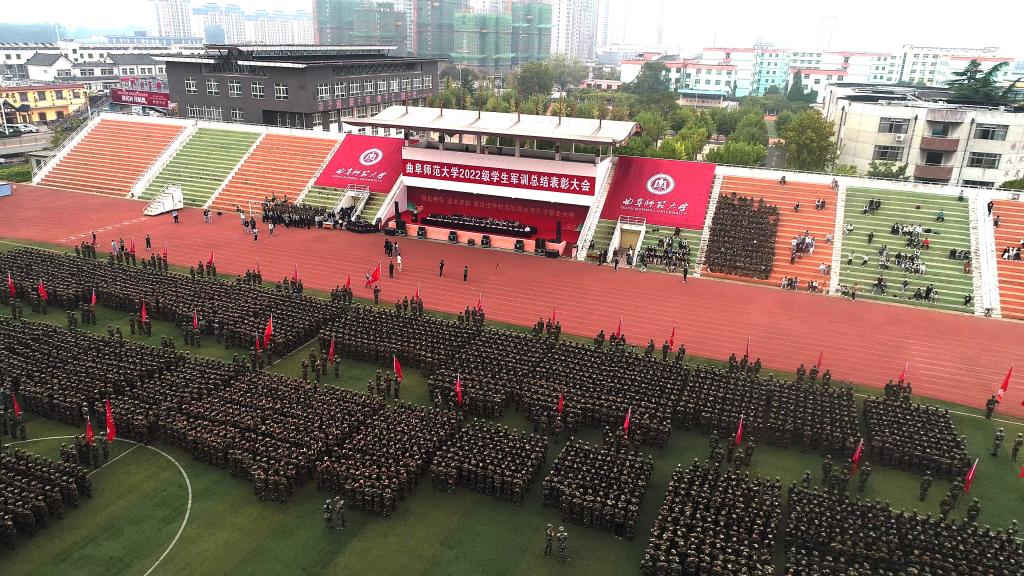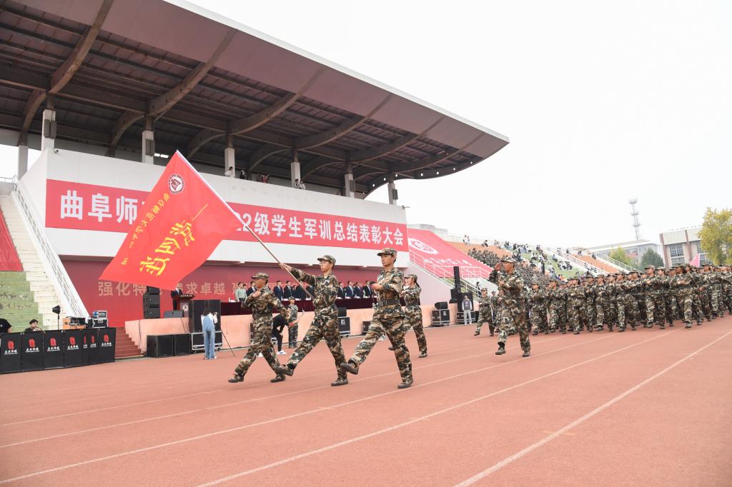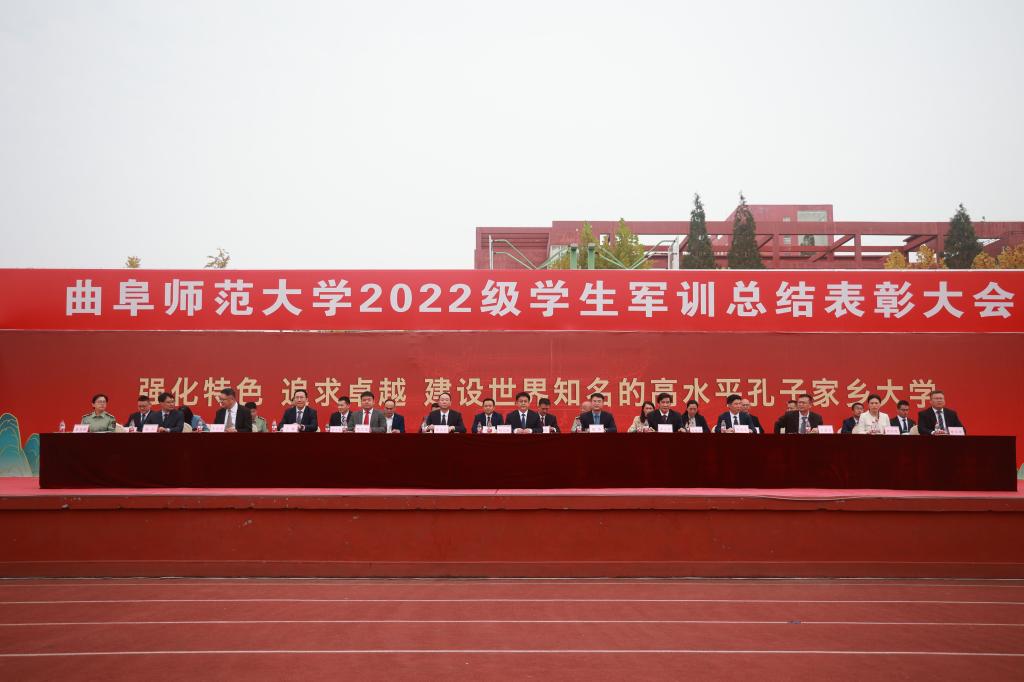 曲阜师大新闻中心讯(通讯员:贺靖平 李欣洋 摄影:刘萌 董少伟 姜曰水 刘扬帆 司娜) 10月16日,华体会官方网页版_华体会(中国)2022级学生军训总结表彰大会分别在曲阜、日照两校区隆重举行,2022级全体参训同学面对鲜艳的五星红旗,迈着白杨般挺拔的步伐,唱响了曲园最为振奋人心的嘹亮军歌,彰显出曲园学子坚定不移跟党走、立志建功新时代的大局情怀和使命担当。学校党委副书记卢国强,党委常委、副校长胡凡刚,党委常委、副校长纪洪涛出席大会。学校相关党政部门负责人、军训领导小组成员、军训团组成人员、各学院党委书记、党委副书记、2022级辅导员、军训教官,参加大会。大会分别由学生工作处处长、军训旅副旅长姜美颖,团委书记、军训旅副政委孔轶众主持。