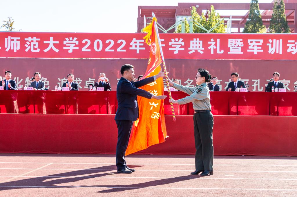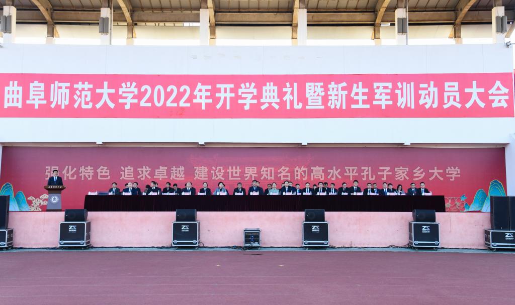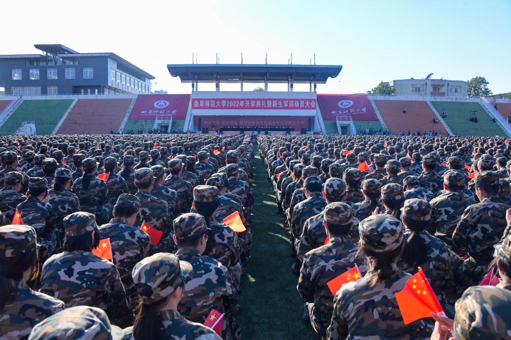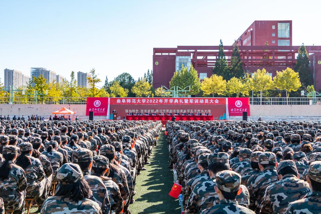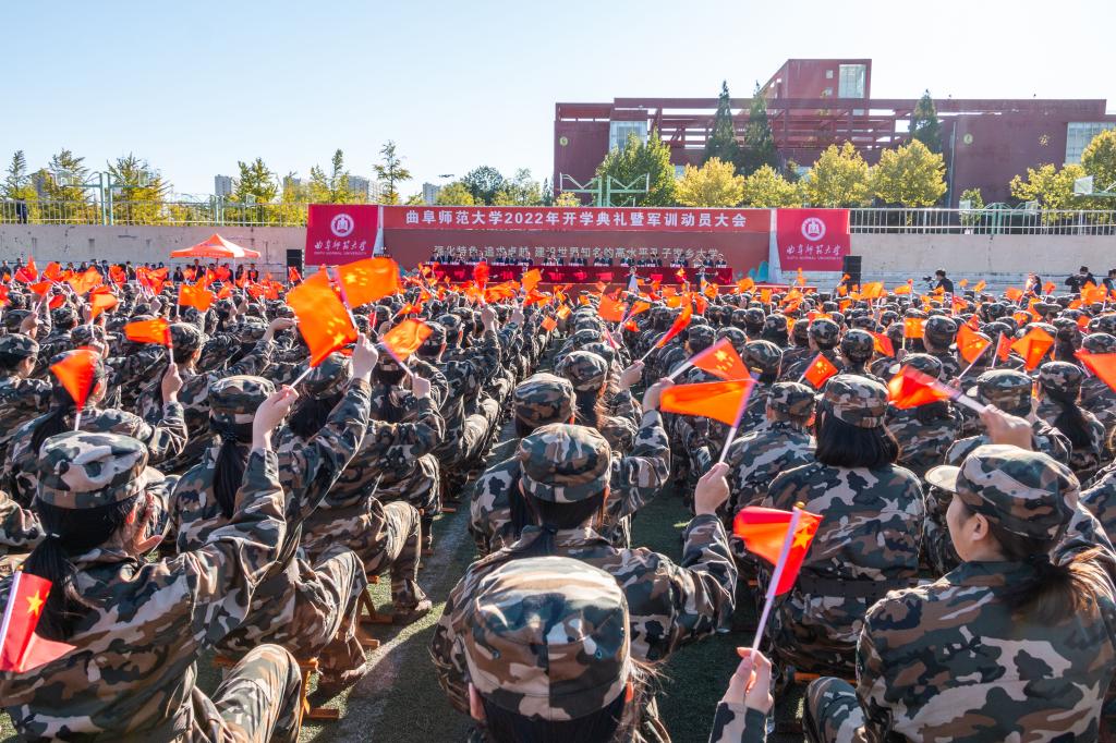 曲阜师大新闻中心讯(记者:李文振 孙红梅 摄影:刘萌 马林梓 董少伟 摄像:袁玭) 10月10日,华体会官方网页版_华体会(中国)隆重举行2022年开学典礼暨军训动员大会。8013名本科生、2267名硕士研究生和118名博士研究生,同上开学“思政大课”,感悟曲园“大学之道”,笃定追求卓越之志,砥砺“强国有我”的理想信念。