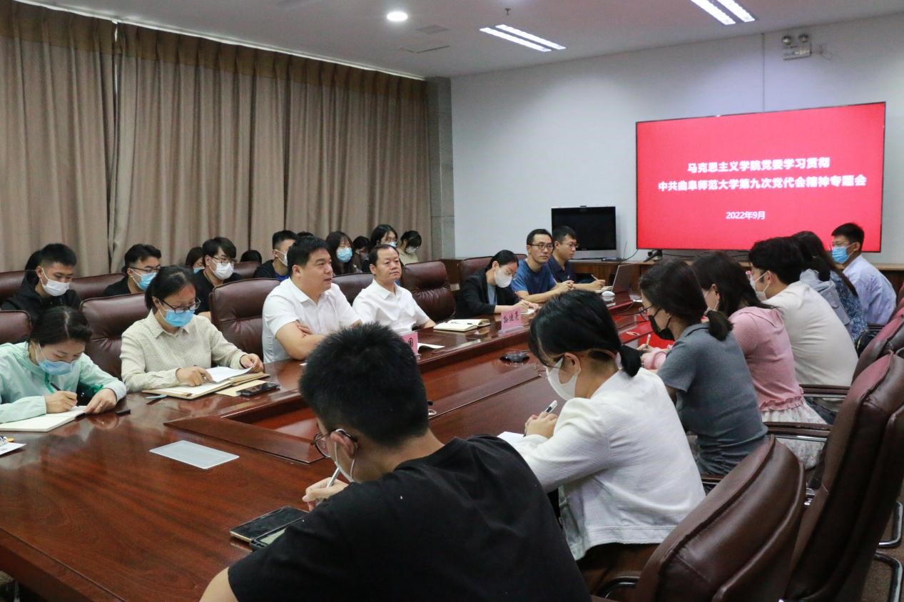 曲阜师大新闻中心讯(通讯员:李婕)9月22日,马克思主义学院党委在日照校区辅导员之家召开学习贯彻中共华体会官方网页版_华体会(中国)第九次党代会精神专题会。马克思主义学院党委书记陈庆国、院长孙迪亮、各党支部书记及全体辅导员教师出席会议,研究生会、学生会主席团成员、各班班长参加会议。学院党委书记陈庆国主持并做辅导报告。