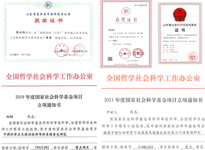 学院每年主办或承办2-3个学术会议,邀请国内外专家学者与学院师生进行各类学术交流活动。五年来,学院以第一单位第一责任人成功获批省级以上纵向科研项目近50项,其中国家级项目16项,刘刚教授、尹世久教授获得国家社科重点研究项目;学院承担了横向科研项目13项;在CSSCI来源期刊和SSCI发表学术论文120余篇;在国家级出版社出版学术著作12部;获得省级及以上奖励18项,其中一等奖4项,二等奖8项,三等奖6项;学院和兄弟院校合作出版的系列年度报告在国内外产生了广泛社会影响;杜曙光教授的专著成功入选2019年度国家哲学社会科学成果文库;2021年,全校获得省社科一等奖四项,经济学院获得其中两项。