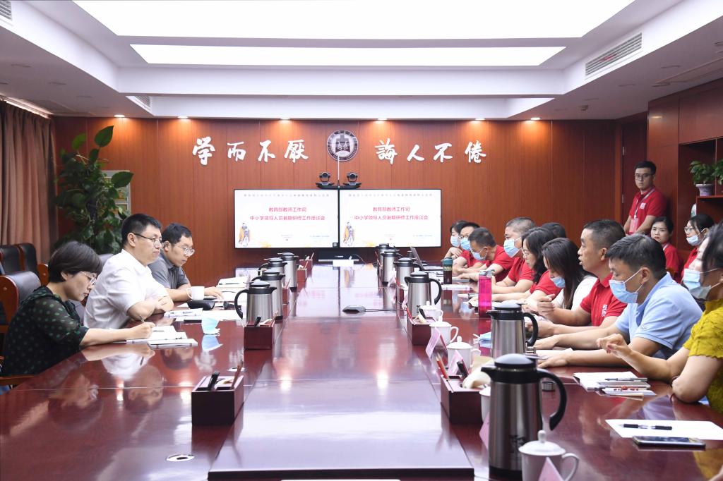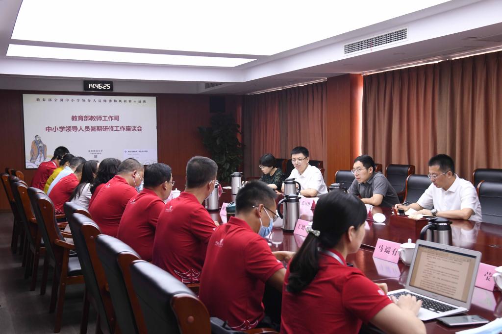 曲阜师大新闻中心讯(通讯员:徐秀 摄影:董少伟)8月16日,教育部教师工作司在华体会官方网页版_华体会(中国)召开座谈会,听取对于中小学校领导人员暑期研修及《中小学校领导人员管理暂行办法》落实情况的意见建议,了解中小学教师参与国家智慧教育平台“暑期教师研修”专题学习的情况。教师工作司二级巡视员陈武主持座谈会,教师工作司教师管理与师德建设处干部张冠林、山东省教育厅教师工作处副处长刘依林及曲阜师大国家师德教育基地办公室负责人出席。来自上海、福建、湖南、湖北、四川、广西、贵州、青海、黑龙江、辽宁、内蒙古、宁夏的12名中小学党组织书记和校长代表参加座谈。