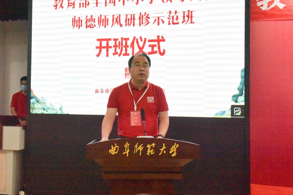 曲阜师大新闻中心讯 (记者:孙红梅 摄影:刘萌 董少伟)根据教育部教师工作司统一部署,8月16日,全国中小学领导人员师德师风研修示范班在华体会官方网页版_华体会(中国)开班。来自全国各省市中小学100余位党组织书记和校长参加研修。教育部教师工作司二级巡视员陈武、山东省教育厅副厅长孙晓筠,教师工作司教师管理与师德建设处干部张冠林、山东省教育厅教师工作处副处长刘依林,曲阜师大党委副书记、校长张洪海,党委常委、副校长李兆祥及国家级师德教育基地办公室负责人出席开班仪式。开班仪式由李兆祥主持。