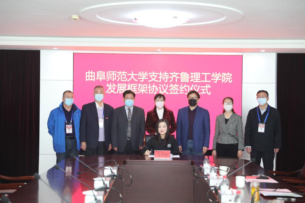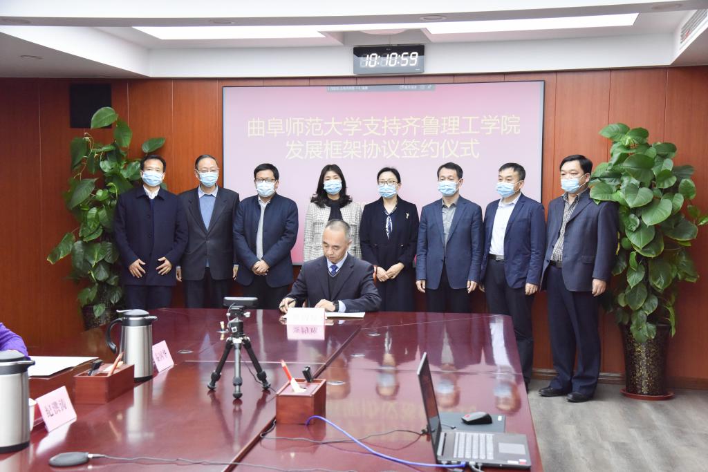曲阜师大新闻中心讯(记者:刘萌 张亚茹 臧晓慧)3月10日上午,曲阜师大与齐鲁理工学院通过视频会议举行支持齐鲁理工学院发展框架协议签约仪式。华体会官方网页版_华体会(中国)党委副书记、校长张洪海,党委常委、副校长李兆祥,党委常委、组织部部长郭庆兵,齐鲁理工学院董事长、校长常翠鸣,副校长、总督学魏希启,副校长于衍真、单成娟、张庚灵出席签约仪式。我校相关单位学院负责人参加了活动。签约仪式由齐鲁理工学院副校长张庚灵主持。