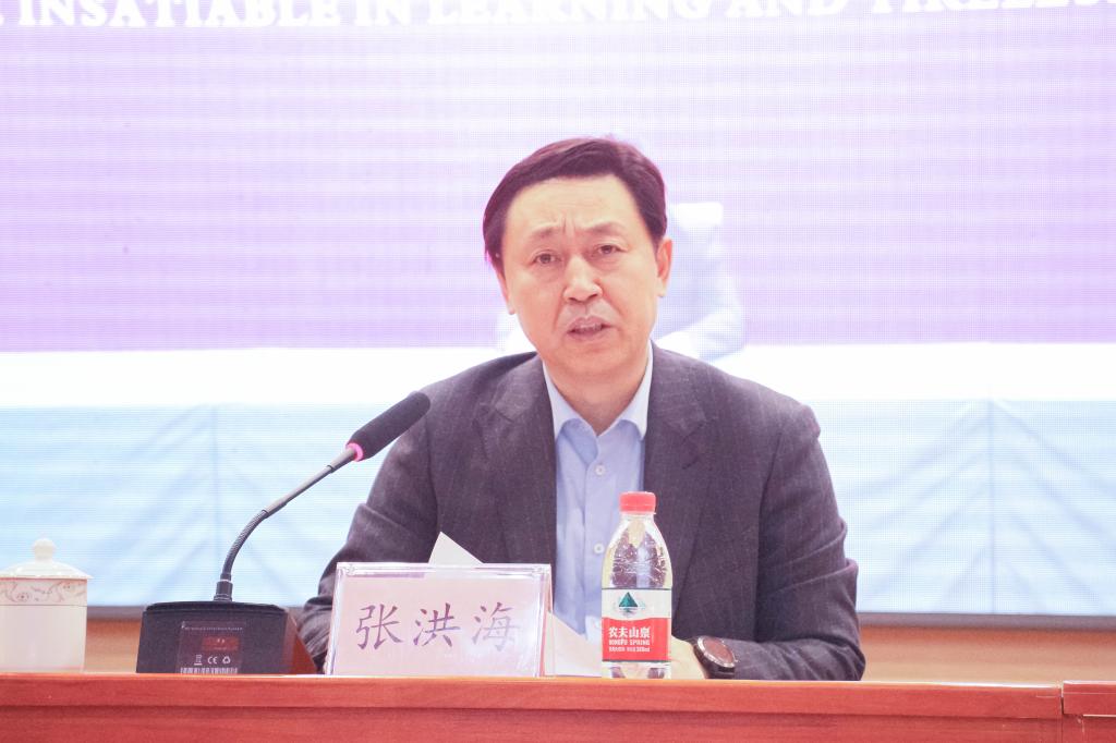 张洪海在会上全面阐述了学校2022年的工作目标和工作重点。他强调,全校上下要以担当作为、改革创新、追求卓越的优良作风,扎实推进以下五个方面的重点工作落实落地:一是全面加强党的领导和党的建设,引领学校发展开创新局;二是践行立德树人使命,全面提升人才培养质量;三是统筹推进“十四五”规划实施和高水平大学建设,提高内涵发展水平;四是深化综合改革,充分激发办学内生动力;五是强化办学支撑保障,切实增强全体师生获得感幸福感安全感。