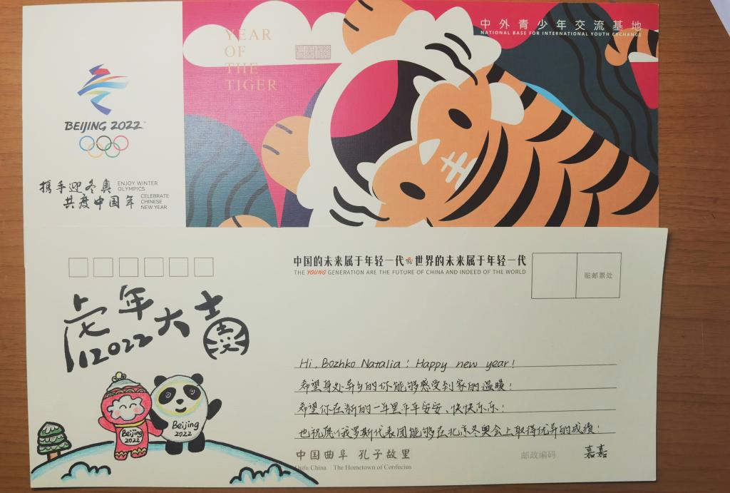 中外青少年交流基地办公室专门设计了“携手迎冬奥·共度中国年”主题明信片,中外联谊青年分别用中文和本国语言书写,表达对新春和冬奥的美好祝愿。“我们相互之间寄递了明信片,表达彼此的友谊,同时这些融入冬奥和春节元素的明信片,也让外国青年朋友更近距离地感受到了北京冬奥会和中国文化的魅力”参加此次活动的华体会官方网页版_华体会(中国)学生金瑞说到。