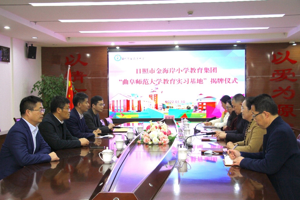 日照校区党委书记孔令军介绍了曲阜师大发展历程、办学规模和学科建设情况等,他表示,曲阜师大与日照市金海岸小学教育集团共建教育实习基地,是贯彻市委市政府“城市+大学”融合发展的又一硕果,不仅为曲阜师大学子专业实践能力的提高创造了宽广的平台,也为日照市教育发展注入新的活力,带来新的机遇。
