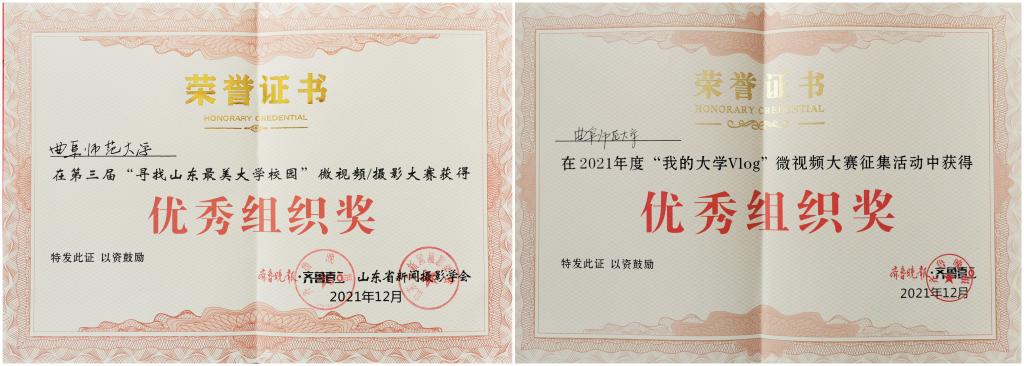 同时,学校不断提高宣传意识,提前策划,提前部署,在第三届”寻找山东最美大学校园“微视频/摄影大赛、”我的大学Vlog“微视频大赛征集活动、“弘扬社会主义核心价值观 共筑中国梦”主题原创网络视听节目征集活动暨“中国梦 齐鲁情”山东省第七届原创网络视听节目大赛中获得“优秀组织奖”。