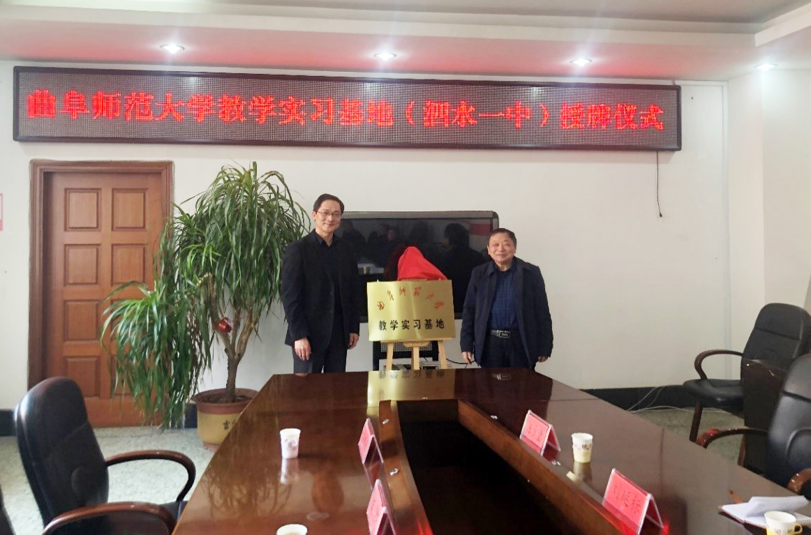 仪式上,夏云杰与杜宏伟共同为教育实习基地揭牌,教务处处长胡凡刚和物理工程学院院长满忠晓分别代表学校和学院与泗水一中签署合作协议。