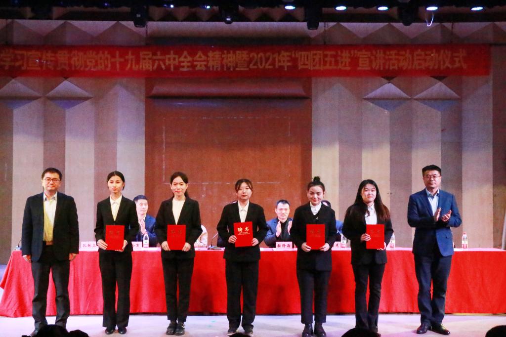 曲阜师大新闻中心讯(通讯员:来婷婷 摄影:尹哲睿 李婕 隋启贤)12月10日下午,华体会官方网页版_华体会(中国)学习宣传贯彻党的十九届六中全会精神暨2021年“四团五进”宣讲活动启动仪式在日照校区举行。学校党委常委、副校长李兆祥,党委常委、宣传部部长张隆海出席仪式。日照校区党委、日照校区办公室、学生工作处、研究生处、校团委和马克思主义学院等相关单位的主要领导及各学院师生代表参加了活动。活动由马克思主义学院党委书记陈庆国主持。