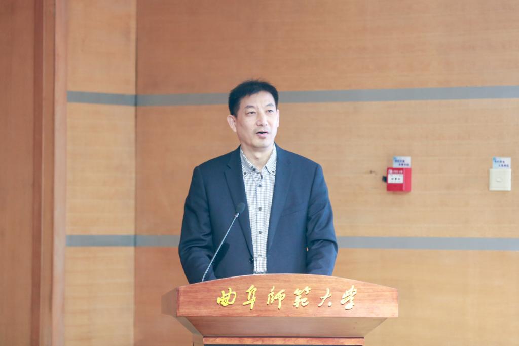 曲阜师大新闻中心讯(通讯员:赵娟 摄影:李文振) 10月21日上午,山东省委党校马克思主义学院院长、省委党史学习教育宣讲团成员林学启教授,应邀来校作学习贯彻习近平总书记“七一”重要讲话精神专题辅导报告。学校党委常委、组织部部长郭庆兵主持报告会,全校处级干部参加学习。