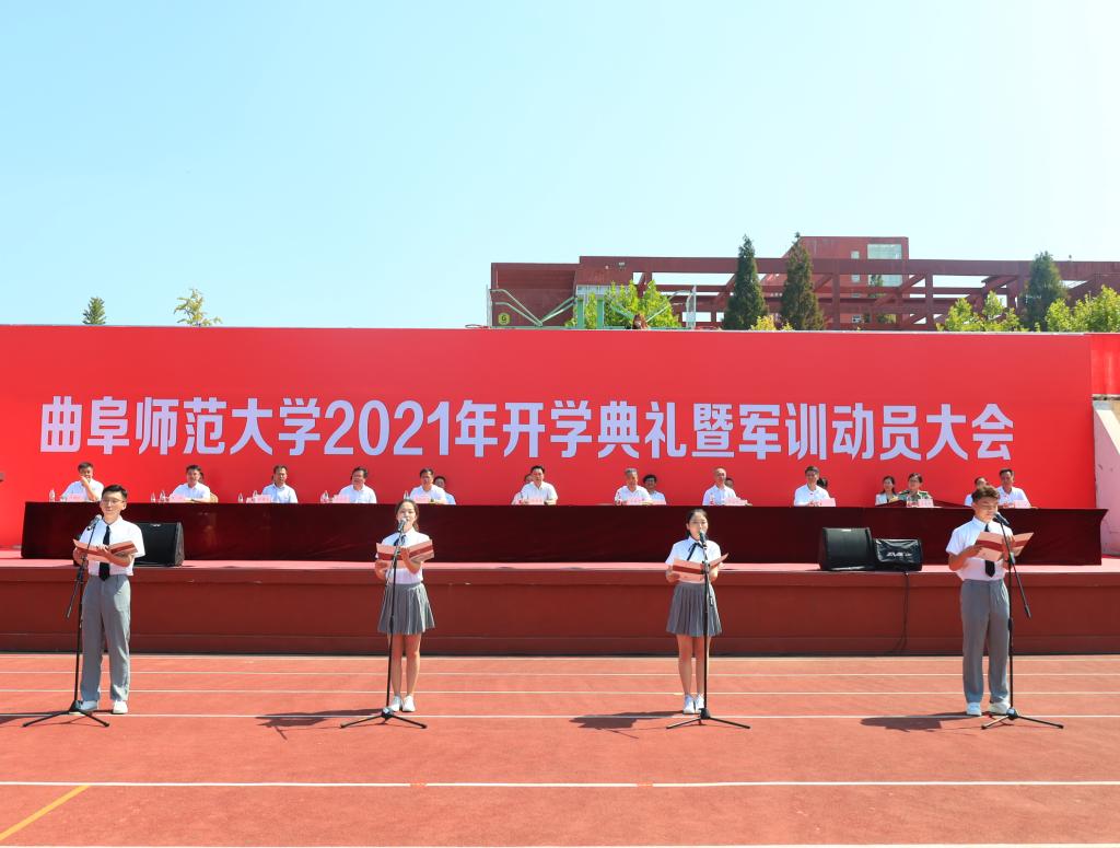 曲阜师大新闻中心讯(记者:孙红梅 李文振 摄影:刘萌 马林梓 王中华 尹哲睿 彭宇涵 王菡 汤捷) 9月14日、15日,华体会官方网页版_华体会(中国)分别在两校区隆重举行2021—2022学年开学典礼暨军训动员大会。学校党委领导班子成员戚万学、张洪海、扈庆学、夏云杰、冯冲、徐思生、胡钦晓、卢国强、李兆祥、屈跃宽、郭庆兵、张隆海, 山东省人大常委会委员张玉忠, 出席大会。学校党政机关各部门、各单位负责同志,各学院师生代表参加了典礼。