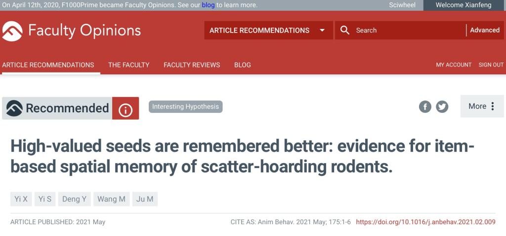 易现峰教授自2019年被引进我校以来,在动植物关系和动物行为生态学领域潜心研究,先后获得山东省高等学校“青创人才引育计划”和国家自然科学基金面上项目资助,已在Journal of Ecology,Animal Behaviour,Frontiers in Plant Science,Microbial Ecology等国际期刊发表论文十余篇。近期发表在Animal Behaviour上的论文(2021, 175: 1-6),被国际生物医学领域重要的学术论文评估机构“Faculty Opinions”列为推荐论文。Faculty Opinions(原F1000Prime)由全球近8000名生物学和医学领域的顶尖科学家从每年所发表的生物医学论文中评选出不足千分之二重要文章,赋予“F1000”论文称号。
