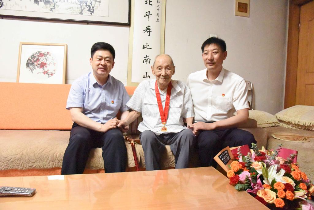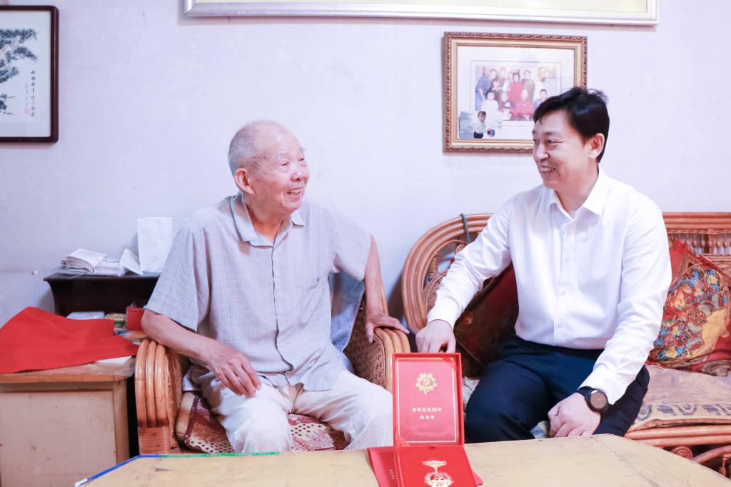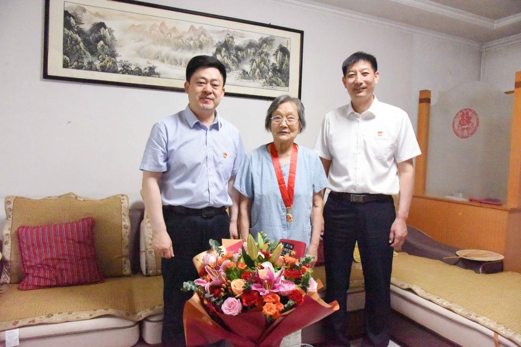 曲阜师大新闻中心讯(记者:刘萌 摄影:刘萌 李文振)在党的百年华诞即将到来之际,6月29日上午,党委书记戚万学,党委副书记、校长张洪海,党委常委、组织部部长郭庆兵分别走访慰问了建国前老党员同志,向老党员同志致以亲切问候和崇高敬意,并为他们送上了“光荣在党50年”纪念章