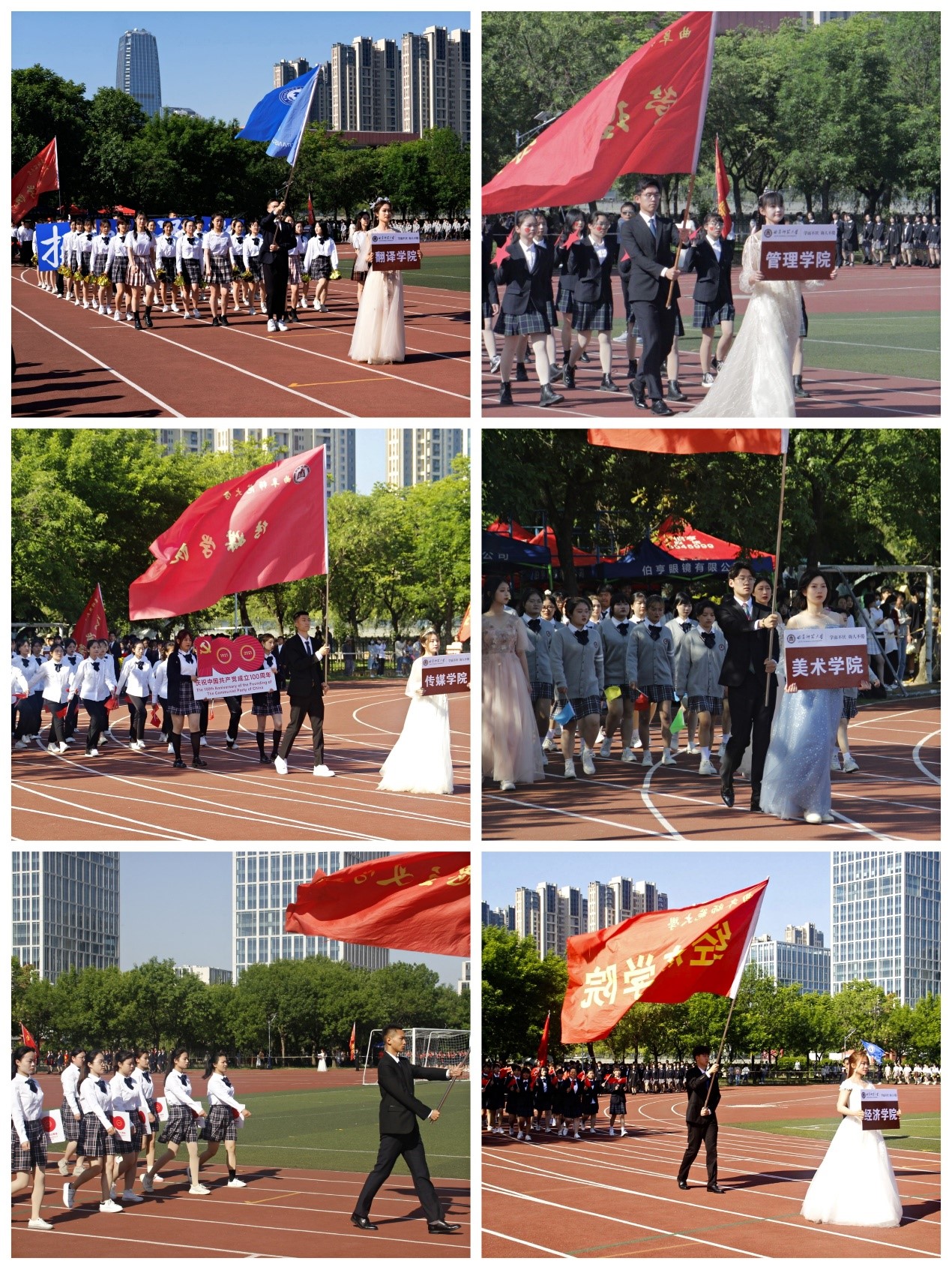 迎着明媚的朝阳,国旗护卫队迈着坚定的步伐进入会场,紧随其后的是的由工学院组成的彩旗方队、由师生共同组成的裁判员方队以及11个学院学部方队。红旗和风车在手中飘扬,嘹亮的口号响彻云霄,整齐划一的方阵队伍充分展现了曲园学子积极向上的精神风貌和严肃认真的体育精神。
