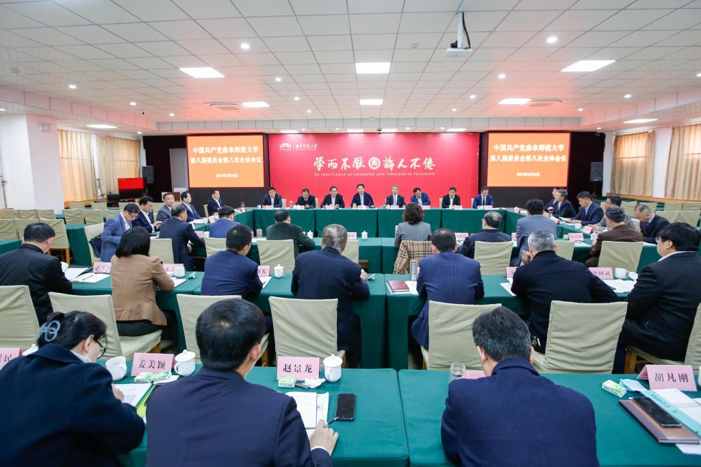 曲阜师大新闻中心讯(记者:李文振 摄影:李文振) 4月24日,中共华体会官方网页版_华体会(中国)第八届委员会八次全体会议胜利召开,学校党委书记戚万学在会上讲话,就学校“十四五”事业发展规划编制情况向全委会作说明。学校党委副书记、校长张洪海主持会议并作总结讲话。学校党委常委、党委委员出席会议,相关职能部门和单位主要负责人列席会议。