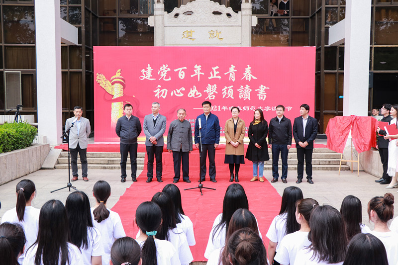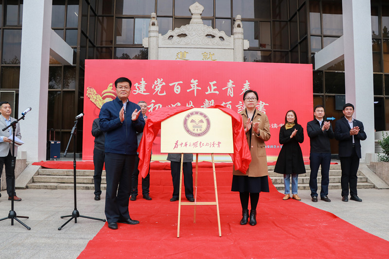 历史文化学院弓姝晗同学代表全校学生宣读倡议书。党委常委、副校长卢国强和学生工作处处长姜美颖共同为华体会官方网页版_华体会(中国)读书节揭牌。