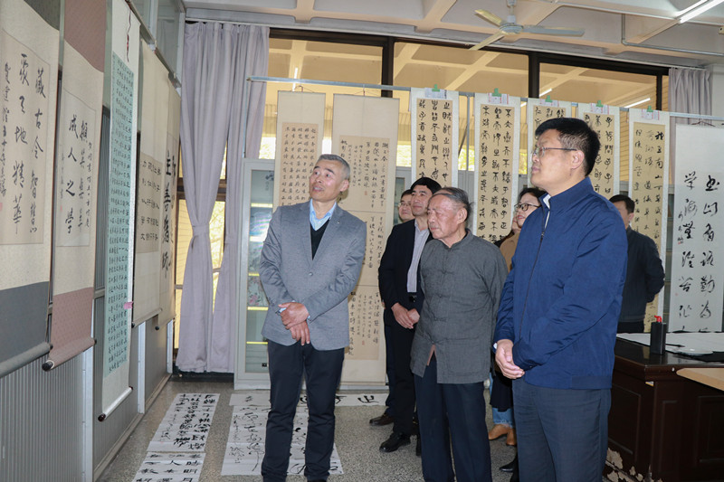 开幕式后,现场全体师生来到图书馆学人文库,共同欣赏了此次读书节活动之一“妙笔丹青庆党建,挥毫泼墨展未来”书画征集活动中的精美书画作品。在场的书画爱好者还现场提笔创作,用笔墨讴歌新时代,表达对党的热爱之情以及对美好生活的赞美,书写自己的读书之志,以最美的艺术形式向党致敬,为党百年诞辰添彩。