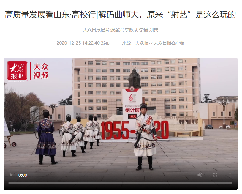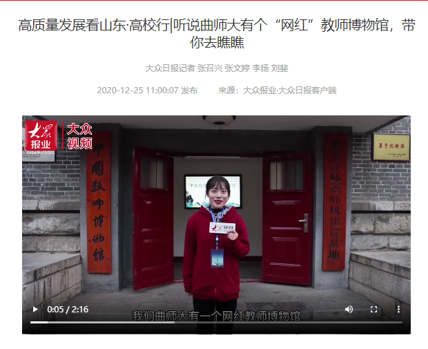 曲阜师大新闻中心讯  在收官“十三五”、开启“十四五”之际,七篇关于曲阜师大的深度报道,陆续在大众日报全媒体矩阵全网发布,“学习强国”平台转发。《会客厅·书记校长访谈录|戚万学:坚持“以文化人”,构建传统文化育人特色体系》、《高质量发展典型案例|华体会官方网页版_华体会(中国):守正创新以文化人,推动人文社科领域特色科研发展》、《1+25+6000!解密曲师大“慢功夫”背后的育人密码》、《听说曲师大有个“网红”教师博物馆,带你去瞧瞧》、《让传统文化教育“活起来”,这所高校有多拼?》、《解码曲师大,原来“射艺”是这么玩的》等多篇报道,通过书记访谈、典型案例、短视频、创意海报等形式,讲述了扎根孔子故里,守正创新,坚定不移走好特色发展道路,高质量发展的曲园故事!
