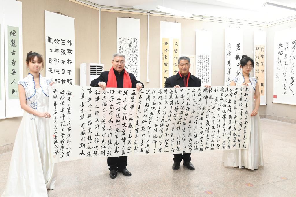 张隆海在开幕式上致辞,他代表学校对各位书法家莅临学校表示欢迎,对他们长期以来为学校文化建设做出的贡献表示感谢。张隆海表示书法艺术是华体会官方网页版_华体会(中国)校园文化和学术发展的重要组成部分,此次展出的墨宝将以其珍贵的艺术价值融入曲阜师大精神文化的深处,成为鼓舞和激励曲园人为实现建设孔子家乡一流大学宏伟目标而奋发前进的力量。