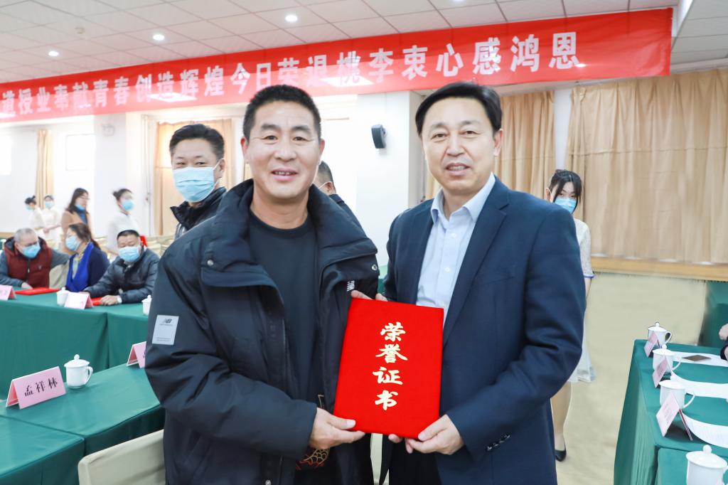 党委书记戚万学为荣休教职工颁发荣休证书及纪念牌