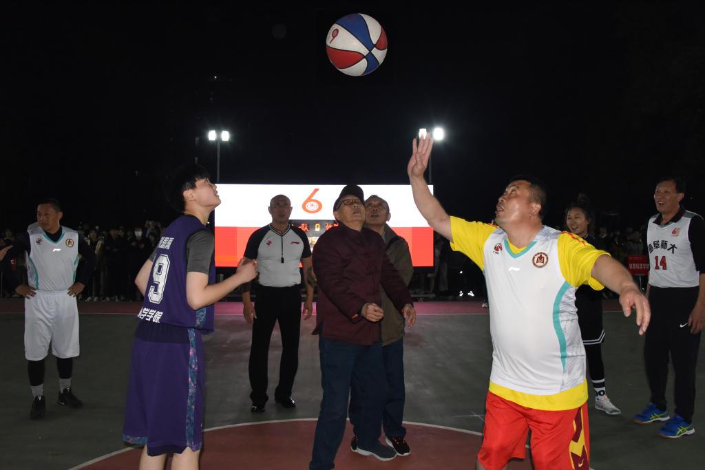 本次校友篮球邀请赛由校友一队、校友二队,体育科学学院学生女队、男队组成。经济民老师为首场比赛跳球。比赛过程中,双方你追我赶、精彩不断,赢得现场阵阵掌声与喝彩,展现了曲园学子良好的精神风貌。