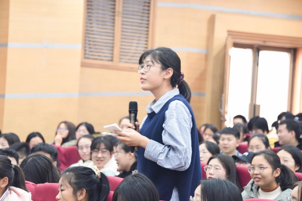 张洪海还与同学们进行了现场互动,回答了同学们的提问,赢得了师生们的热烈掌声。