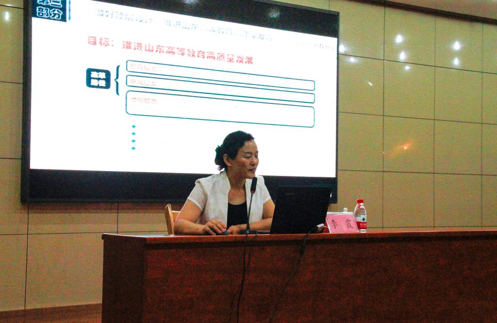 李霞处长以《做好顶层设计,着力推进山东高等教育高质量发展》为题,立足新时代高等教育事业所肩负的历史使命,总结了近年来全省高等教育取得的历史性成就,指出了目前存在的问题,从战略高度阐释了当前和今后一个时期山东高等教育发展的顶层设计、实施路径和具体举措。李安增教授的报告以《如何深入学习<习近平谈治国理政>第三卷》为题,从基本情况、精髓要义、重大意义、深邃启示四个方面,全面、系统、深入的讲解了《习近平谈治国理政》第三卷;紧密结合高校的根本任务,详细阐述了什么是立德树人、为什么强调立德树人、如何落实好立德树人。两场报告讲解独到、论述精辟,集理论高度、思考深度和实践温度于一体,对于大家拓展工作思路、完善工作实践具有很大的启发意义和指导意义。