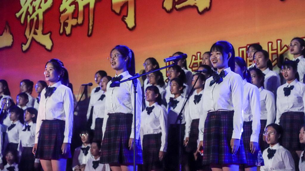 “今天是你的生日,我的中国”,比赛演出在全场深情的咏唱中正式拉开帷幕。随后,经典的旋律、嘹亮的歌声、激昂的节奏,交替响彻美丽曲园。《我和我的祖国》《爱我中华》《歌唱祖国》《天耀中华》,一段段动人赞歌,代表着向伟大祖国的深情告白;《保卫黄河》《映山红》《飞跃大渡河》《四渡赤水出奇兵》,一首首红色歌曲,唤起着人们的红色记忆、红色初心;《不忘初心》《走向复兴》《共筑中国梦》《我们都是追梦人》,一支支美好旋律,表达出曲园人奋进新时代的担当与壮志。