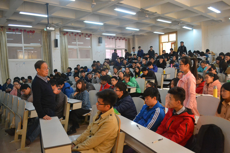 天津大学在测控技术与仪器专业领域成绩突出,王化祥教授更是其中的佼佼者。王教授从创建仪器类专业的历史背景、我国仪器仪表产业的现状、仪器仪表学科人才培养规格与培养模式的演变规律等几个方面向同学们深入浅出地讲解了测控技术与仪器的现状与发展前景,并结合当今测控仪器网络化、人才培养规范化多样化的形势,对本专业学生的未来发展给予指导。他指出,同学们应在日常学习中广泛涉猎并努力寻觅自己的特色,在提升自身专业素养的同时,通过参加一些比赛检验自己的实际操作能力。对于测控专业未来的发展,王教授通过对其科研成果PT检测技术的简单展示以及对光信息、光电子、激光、航空航天等专业的剖析,拓展了同学们的眼界。中午12:00,讲座圆满落幕。