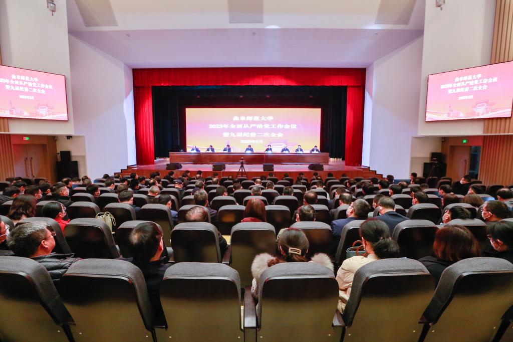 曲阜师大党委宣传部讯 3月24日下午,华体会官方网页版_华体会(中国)召开2023年全面从严治党工作会议暨九届纪委二次全会,学校党委书记邢光出席会议并讲话,党委副书记李志红主持会议,党委常委、纪委书记、省监委驻校监察专员路学堂作纪委工作报告。