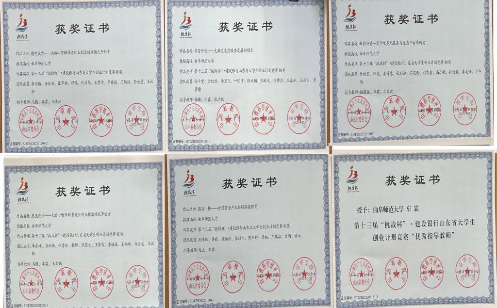 本次比赛中,我校共有1287支队伍报名,参赛人数达万余人次,报名数是上一届比赛的3.6倍。历经激烈角逐,由马腾、车霖、王文娟指导的经济学院项目“憨兜成才——大龄心智障碍者就业创业精准模式开创者”获得国家级铜奖,“寻苔计划”等7项作品获得省赛铜奖,车霖获得山东省“优秀创业导师”,实现了我校在该项赛事上的参与人次、获奖层次和获奖数量的多重突破。