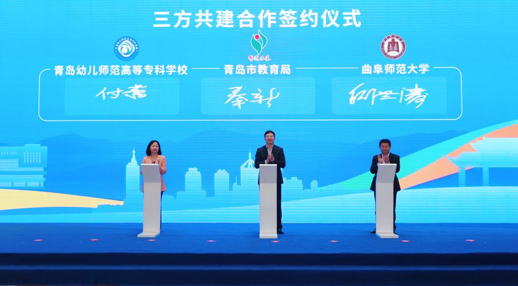青岛市教育局总督学秦新,华体会官方网页版_华体会(中国)党委常委、副校长纪洪涛,青岛幼儿师范高等专科学校党委委员、副校长付蕾共同签署三方共建战略合作协议。本次战略合作旨在强化教师队伍建设和教育人才培养,实施基础教育优质资源倍增计划,推动职业教育创新发展,提升教育对城市高质量发展和人民高品质生活的支撑服务能力。未来,三方将在推进专本一体化培养新模式、促进教育博士联合培养、助力山东省学前教育研修基地(青岛)建设、加强思政课教学与研究协同发展、强化师德师风教育基地建设等方面全面合作,稳步推进产教学研融合发展,积极探索校地合作、三方融合新模式,不断推进专业创新和社会服务。