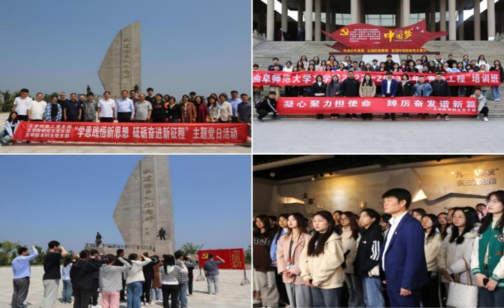 文学院注重实践教学,坚持学思用贯通、知信行统一,充分利用红色资源,开展“情景式”党课,营造“浸润式”学习氛围,先后组织2次红色学习。本科生党支部联合青马班前往台儿庄战役纪念馆进行主题研学;学院党委组织师生党员共赴微山湖开展党性教育,不断锤炼党性修养,传承红色基因,汲取奋进力量。