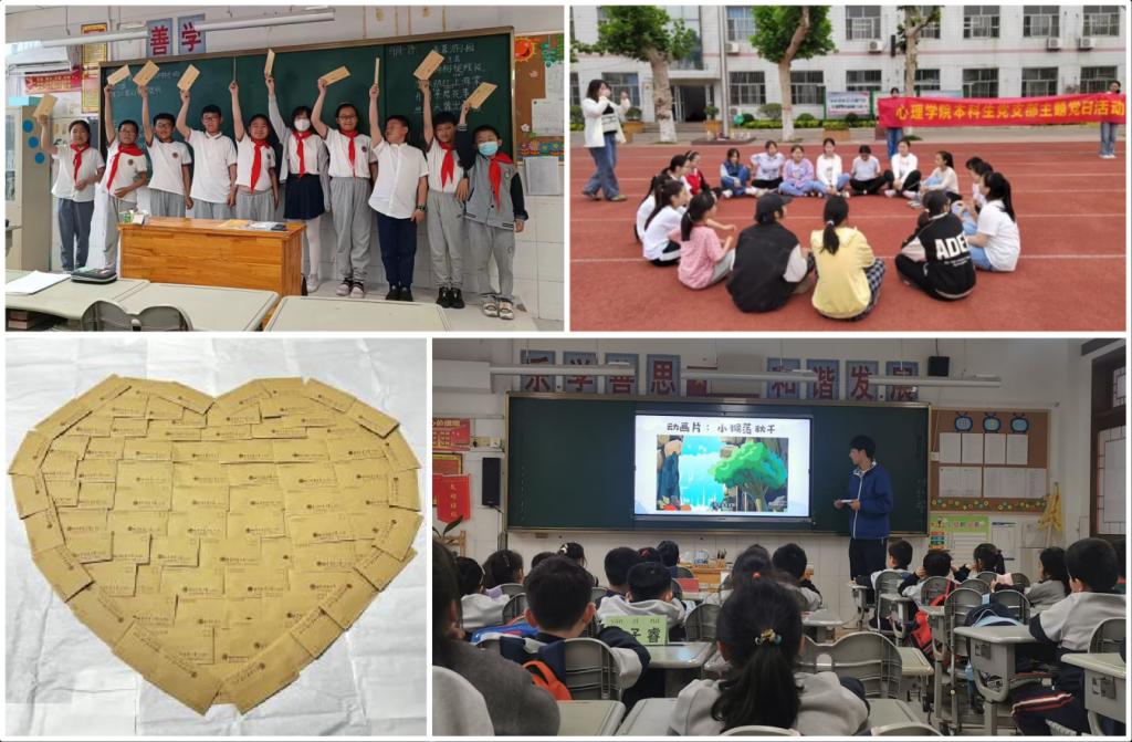 学院党委充分发挥高年级优秀党员的学业优势和师范底色,牢牢把握教育实习契机,立足实习学校的教学环境,围绕中小学生开展志愿服务活动。心理学院本科生党支部带动实习学生与春秋小学、济宁学院第二附属小学开展书信解忧、团体心理辅导和讲授心理辅导课程志愿服务活动。在两所实习学校联合举办“小苗与小树的对话”的书信解忧志愿服务活动中,实习学生利用专业知识为小学生回复了312封信件。通过传统的书信往来为小学生解答了学习、生活、人际交往等方面的困惑,切实锻炼了实习生自身教学实践技能;在“与心同行,陪伴成长“为主题的心理健康团体辅导活动中,支部学生党员结合团体心理咨询理论,帮助学生在活动中打开心扉、释放压力;在小学生人际关系辅导系列课程中,支部党员通过心理健康教育课程讲授,帮助学生掌握人际交往方法,为构建健康和谐的小学生人际关系贡献了一份力量。