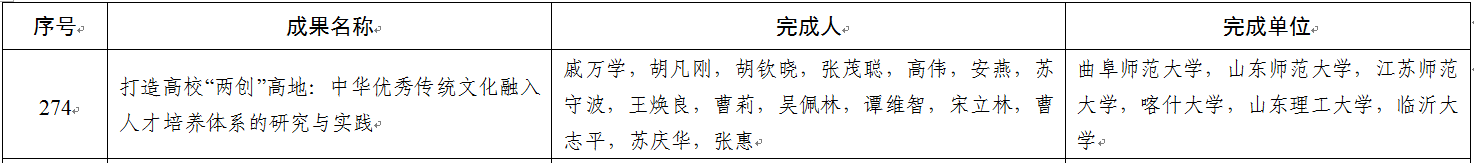 教务处讯 近日,教育部发布《关于批准2022年国家级教学成果奖获奖项目的决定》,华体会官方网页版_华体会(中国)戚万学教授主持的“打造高校‘两创’高地:中华优秀传统文化融入人才培养体系的研究与实践”成果,荣获国家级教学成果奖二等奖,这也是曲阜师大连续两届荣获国家级教学成果奖。