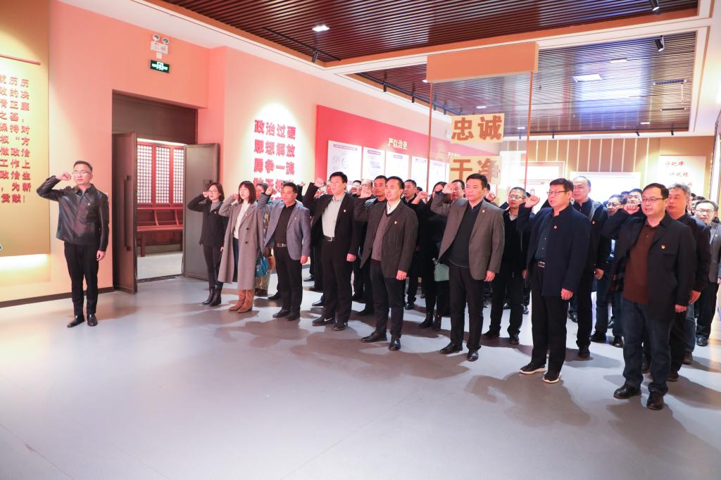 全体人员实地参观了每一个展区,深入了解党在不同历史时期、不同发展阶段开展反腐倡廉的坚定决心和有力举措,聆听了习近平总书记关于全面从严治党、党风廉政建设和反腐败斗争的重要讲话,深入学习了解党的百年纪律史,认真观看违纪违法典型案例。廉政教育馆中详实鲜活的案例、触目惊心的画面、令人警醒的忏悔、曾经的“身边人”,发人深思,使人震撼,引发大家热议。最后,大家面对党旗重温了入党誓词,用铮铮誓言诠释共产党人初心使命。