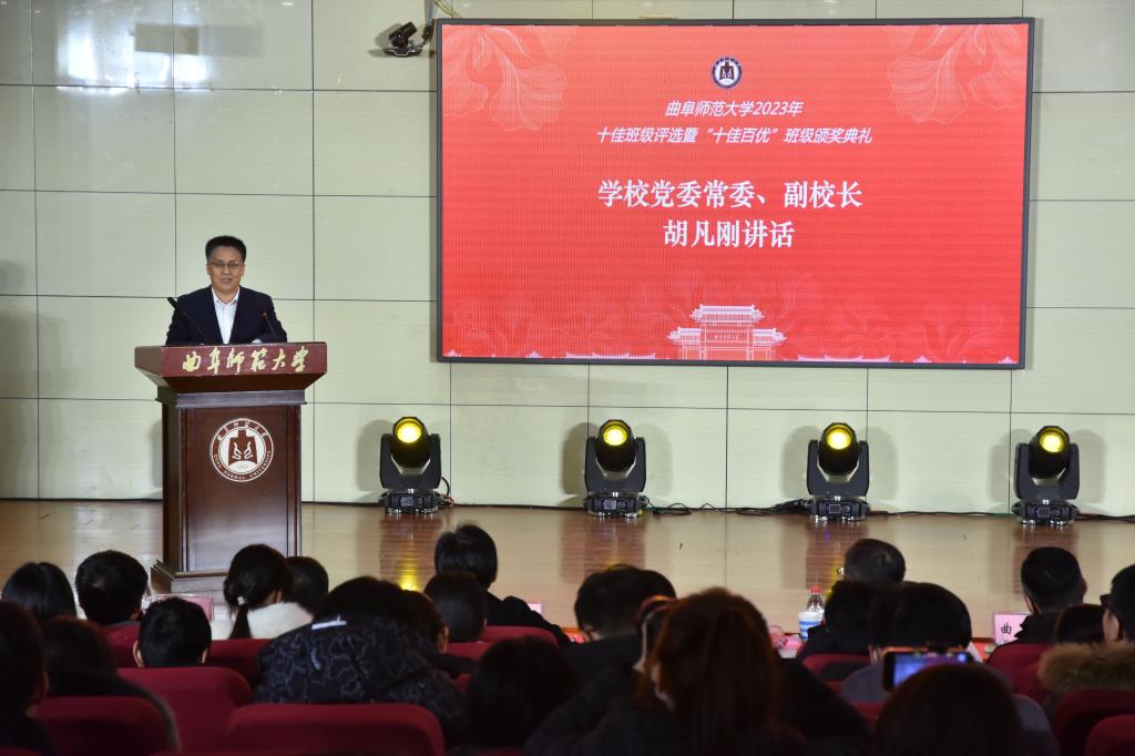 曲阜师大学生工作处讯 12月20-21日晚,曲阜师大2023年十佳班级评选展示会暨“十佳百优”班级颁奖典礼分别在两校区举行。22个十佳候选班级,分别进行了演讲和风采展演,并现场揭晓了十佳班级名单。党委副书记卢国强、副校长胡凡刚分别出席活动。学生工作处、校团委领导班子、各学院党委副书记担任评委,全体辅导员和学生代表观看了活动。