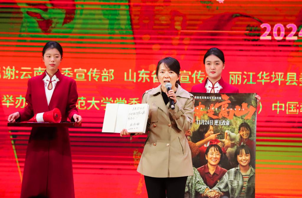 “《我本是高山》由教师博物馆永久收藏,相信张桂梅老师倾心教育、无私奉献的育人精神一定能在博物馆生根发芽成长,一定能让更多的人感受领悟时代楷模的师者大爱。”中共云南省委宣传部电影处二级调研员段兴同在致辞中表示。“《我本是高山》不仅是一部电影作品,更是一部鲜活的教材。它将作为学校每一位老师、每一位学生的“必修课”,作为每一位到教师博物馆参观和培训者的“必修课”,并通过他们激励和引领更多的人,学习张桂梅老师的崇高信仰,践行张桂梅老师的红梅品格,高山仰止、景行行止,心有大我,至诚报国。”学校党委常委、宣传部部长孙祥广在致辞中说。