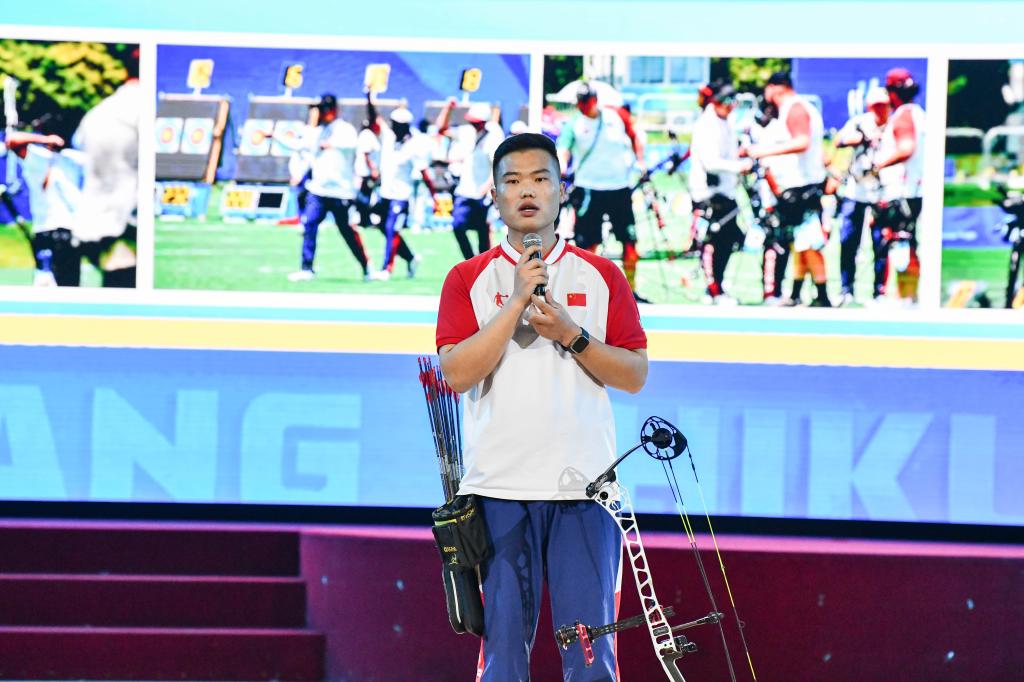 优秀青年学生代表世界大学生运动会射箭冠军王世坤、高质量就业代表周宇馨、中国大学生自强之星获得者张孝林、退役士兵代表杨会兴分别围绕夺冠历程、求学经历、志愿服务、参军体验与同学们进行了分享交流,彰显了曲园学子敢于吃苦、善于创新的进取品格,表达了曲园青年锐意进取、奋发向上的信心决心。