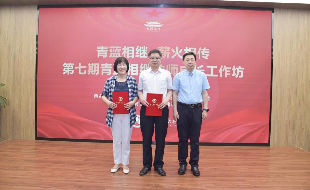数学科学学院张克梅教授、统计与数据科学学院尹传存教授受聘第七批“青年教师成长导师”,张洪海为两位成长导师颁发证书。