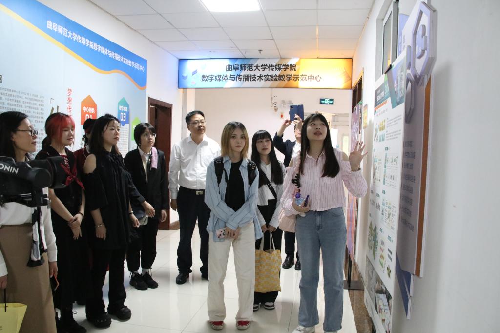随后,李功勤一行与曲阜师大传媒学院师生共同参观了毕业作品展。这些作品以实物和视频的形式呈现,由世新大学图文传播系和数字多媒体设计学系的同学以及曲阜师大传媒学院数字媒体系的同学创作。联合作品展为同学们提供了相互交流、相互学习的机会,也增进了两岸青年之间的了解与友谊。