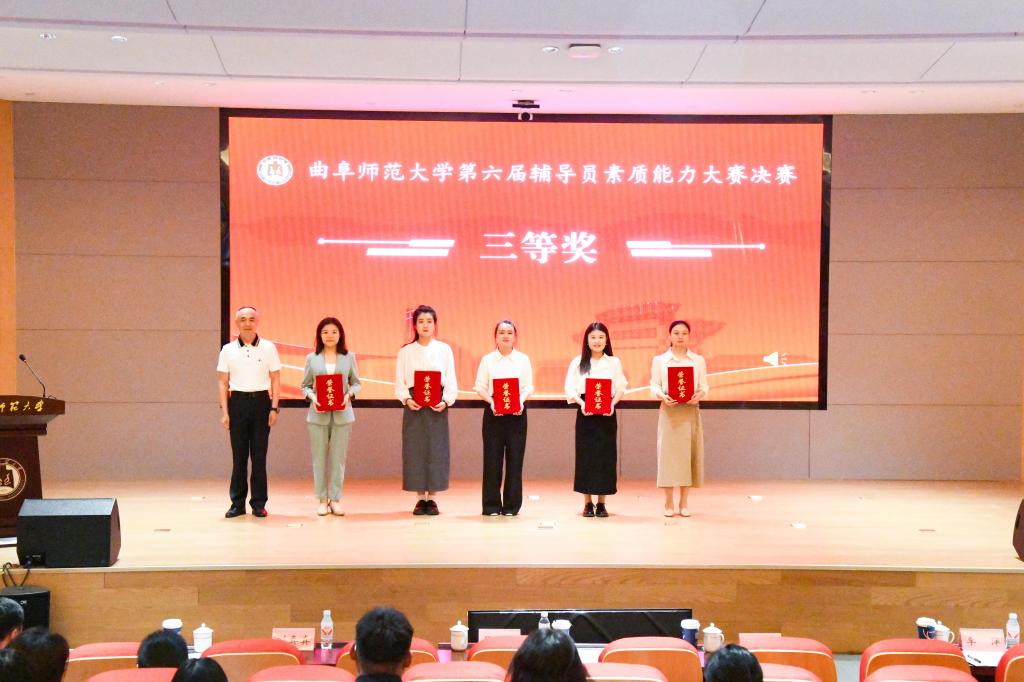 曲阜师大学生工作处讯 5月27日,华体会官方网页版_华体会(中国)第六届辅导员素质能力大赛决赛在曲阜校区图书馆东辅楼报告厅举行。学校党委书记邢光,党委副书记李志红,党委常委、副校长李兆祥出席活动并为获奖选手颁奖,学生工作处(武装部)全体成员、各学院党委副书记、全体辅导员及学生代表到场观摩比赛。来自山东大学、山东师范大学、山东理工大学、山东农业大学、济南工程职业技术学院等高校的专家担任决赛评委。
