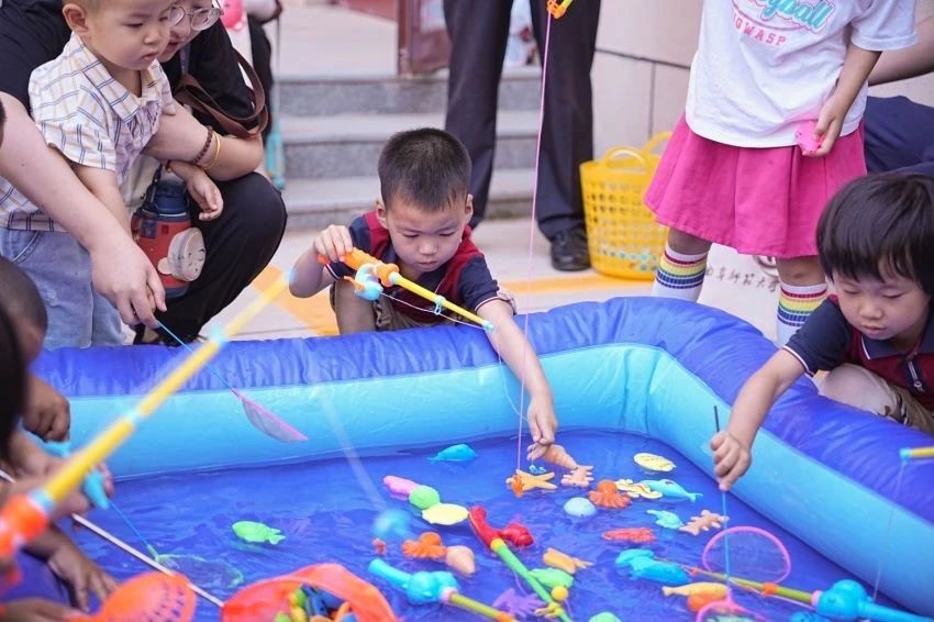 活动特别邀请了学校大学生社团志愿服务者等50余人和小朋友一起共庆“六·一”儿童节。在幼儿园园长亓霞的带领下,老师们精心准备了茶道、国画、剪纸、拓印、扎染、面塑、陶泥、武术、射艺、投壶、套圈、魔方、钓鱼等多种项目,营造传统氛围,发挥高校特色的同时增进了亲子感情,提高了团队协作能力,为孩子们带来了一场难忘的节日体验。孩子们积极展现自己的才能与智慧,领略传统文化艺术的魅力,尽情享受乐趣,欢声笑语遍布幼儿园的每个角落。